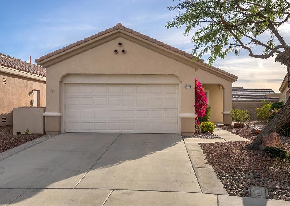 Sun City Palm Desert - Pasadena. This pristine greatroom home sits in a lightly traveled corner of the California Casuals section which means its close, but not too close to the neighborhood pools and the golf cart gate to the shopping center. The home has an east facing yard with an extended patio, alumawood patio cover and low maintenance desert landscaping. AC is new in 2022 Inside, there is tile flooring, laid offset, in all but the bedrooms which have manufactured bamboo hardwood. The kitchen has oak cabinetry, stainless, appliances and corian counters. A bay-slider goes from the dining area to the rear yard. The primary suite has a large walk-in closet. Its bathroom has a stall shower with glass doors. A shower/tub is in the guest bathroom. The guest bedroom has a closet with mirrored doors. The spacious two car garage has room for ample storage.