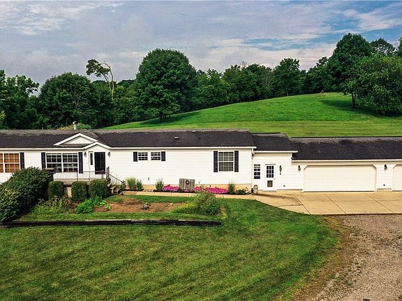 Auction Date September 5th @ 5 PM. Homestead on almost 40 acres to be offered at public auction located south of Warsaw overlooking the Walhonding River Valley. The home, built in 2003, sits on a poured wall foundation with 1,836 sq. ft. finished living space. The main floor hosts a large kitchen, dining room, living room w/fireplace, master suite, 2 additional bedrooms, laundry room and a total of 2 ½ baths. The walk out lower level is mostly open with lots of storage and a full bath. Home is serviced with well, septic, propane forced air furnace, central air and a Guardian generator. A breezeway connects the house to a finished 3 car garage. Outbuildings include a newer 15’x30’ barn and a 20’x24’ shop building with an enclosed lean-to. The land offers a good mix of open and wooded acreage with hay/pasture ground, small stocked pond, pear trees and garden area. The woods has some small open areas for food plots as well as it borders a large crop field and has produced trophy whitetai