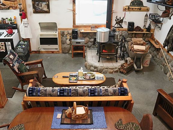 Escape to serenity in this off-grid haven featuring a main cabin and a charming guest house. Immerse yourself in meticulous craftsmanship, from stamped concrete floors to artisanal finishes. Main House is 1200 sqft m/l w/ additional loft space; Guest house is 720 sqft m/l w/loft as well. Interior features both wood and propane heat, solar array as well as 2 separate back up generators for year round power. Revel in nature from covered outdoor spaces, surrounded by seclusion. This is not just a retreat; it's a crafted sanctuary for those seeking solace and style. Adjacent to public land, it's a paradise for hunting and outdoor enthusiasts. Easy access ensures your private escape is also conveniently reachable.