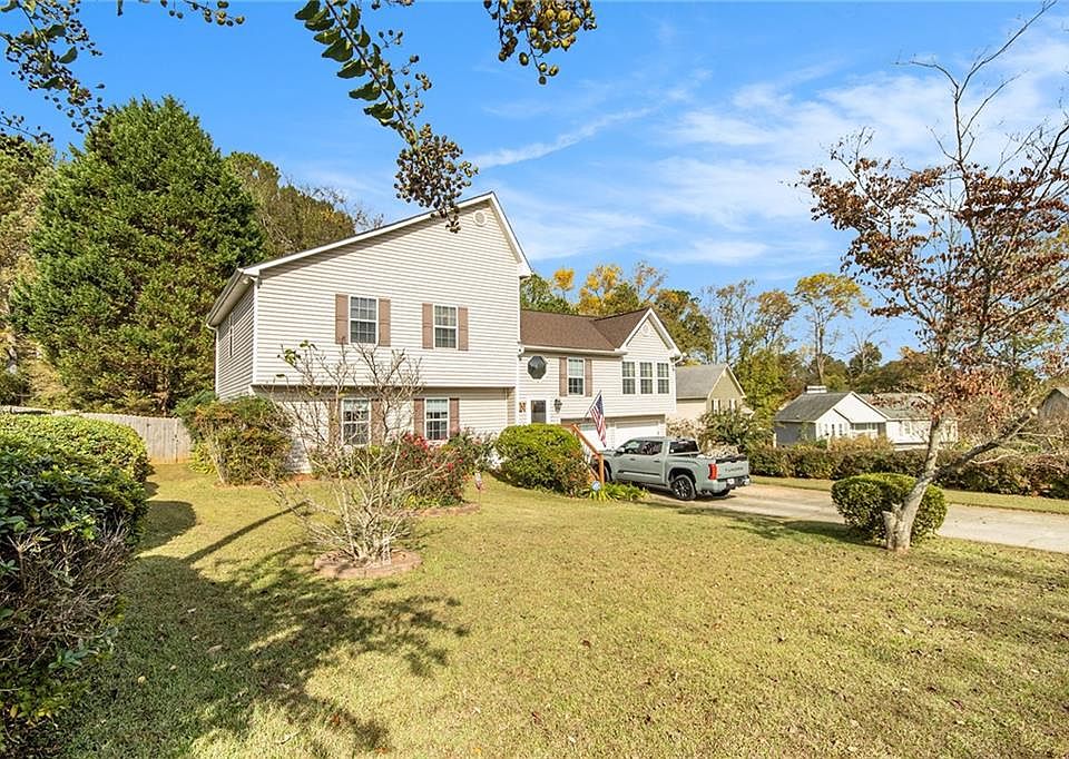Stunning split level home with tremendous renovations! The kitchen boasts granite counters, Stainless Steel appliances, updated white cabinets, a tile backsplash, and breakfast area. All the bathrooms have all been updated with granite vanities, new toilets, flooring, and paint! Vaulted ceiling in the living room with a gas fireplace and views to the dining room. Oversized primary suite! Fenced in backyard with tons of privacy and gardening space. Established neighborhood with quick access to East West Connector. No HOA! the home is half a mile from the Silver Comet trail!