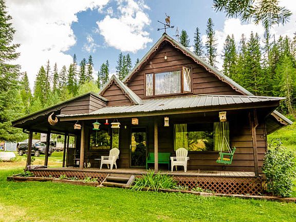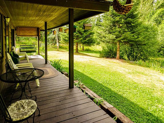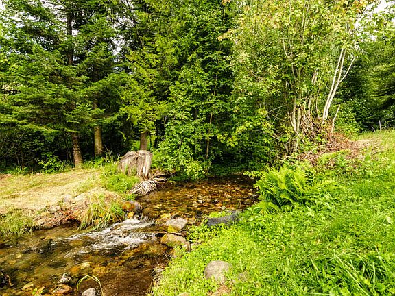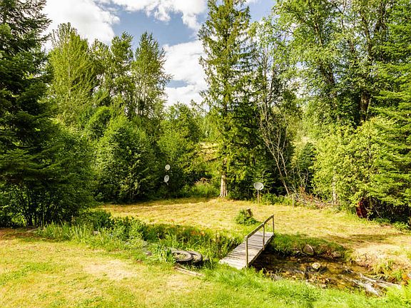 Cedar Creek runs through it. Peaceful and private setting with 6.95 beautiful acres.The home is a well built 3 bedroom, 1bath, 1408 square feet, two story home. Outbuildings include a 5 bay shop building with 2 stalls for shop usage, 3 stalls for parking, a canning shed w/power, wood shed, garden shed w/cement floors, chicken coop, nice landscaping, and a large fenced garden area. Cedar Creek flows the entire width of the property. The antique wood cook stove is included. Recently remodeled with new carpet and vinyl floor covering.
