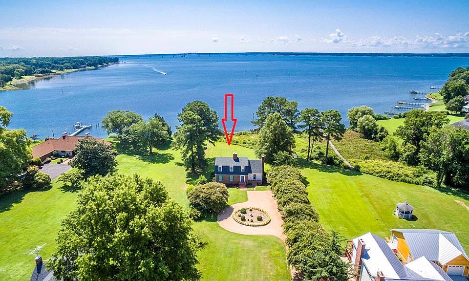 Incredible unobstructed views of the mouth of Carters Creek to the Rappahannock River. Watch a continual boat parade from your waterfront decks. No dock on the property at present but easy to add with a permit. This charming brick and vinyl home has been in one family since construction in 1979. Large waterfront lot is beautifully landscaped with privacy and charm. Home has been taken care of over the years and is very livable "as is" or ready for your facelift. More potential than you can imagine. Offered is a forming living room, Dining room, kitchen, family room with fireplace, enclosed creek room, and a powder room on the first level. Second level offers 3 bedrooms, 2 baths plus studio/office room ideal for handling extra sleeping quarters for overflow guests. Decking and balcony areas across waterside of home for outdoor living. A full walkout basement with fireplace large area is ready to complete into a large family/rec room plus laundry/mud room. Sliding doors to exit onto waterside yard are already installed. Heat pumps for central air/heat with oil furnace back up heat for winter. Enjoy living in this quiet waterside village with great places to walk, ride bikes or visit friends in the neighborhood. Truly a special gem that has never been offered on the market since it was built in 1979. Buyer to confirm water depth to the satisfaction.