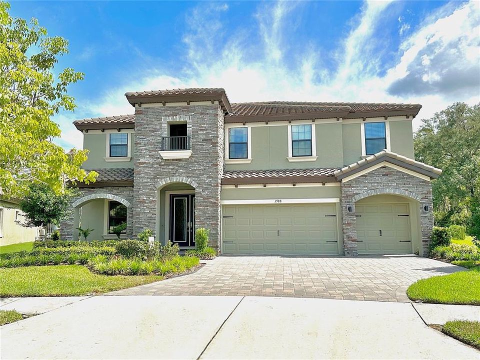 HUGE PRICE IMPROVEMENT!! Experience luxury living located in the highly sought-after neighborhood of Starkey Ranch, close to everything but yet this neighborhood gives you a sense of nature and community with walking trails, gathering areas, and park like green spaces. As you enter the home your eye is immediately drawn to the pool and the serene conservation area that greets you through a direct line of sight from the entrance provided by the expansive sliding glass doors. With 5 Bedrooms, 4 full baths, 3 car garage, upstairs bonus room, and formal dining room, this home has everything you need. The foyer opens to the main living area with a gorgeous light and bright kitchen offering an oversized extended island, extended kitchen cabinets through entire back kitchen wall, granite countertops, tile backsplash, pot filler with reverse osmosis, stainless steel appliances with gas cook top, 42-inch cabinets and crown molding, and a walk in-pantry with custom shelving. The first floor of the home also has a bedroom and pool bathroom that serves perfectly as a guest suite. The laundry room has built in cabinetry and is located on the second floor, along with the master suite and 3 additional bedrooms. This home has had several upgrades to include extended rear sliding glass doors out to the pool, gas pool heater, surround sound pre wiring, security pre wire, crown molding throughout the majority of the home, water softener, reverse osmosis to the refrigerator and pot filler, upper and lower kitchen cabinet lighting, hurricane shutters and more. The primary ensuite has a dual sink vanity with granite countertops, stand-up shower with glass door, and a walk in closet with built in cabinetry systems. Bedrooms 3 & 4 share a Jack and Jill bathroom also with granite countertops and dual sink vanity. The bonus room is spacious and has plenty of room for entertaining and games. The exterior elevation has upgraded stacked stone, tile roof, and a pavered drive. This home is located on a pie shaped lot with a larger back yard that backs up to conservation. The Starkey Ranch community offers an abundance of amenities, including three neighborhood pools, dog parks, playgrounds, pavilions, a boat house, kayaking, canoeing, weekend markets, holiday events in the park, a community garden, 22 miles of paved trails with connections to the Starkey Wilderness preserves. Starkey Ranch K-8 School, Publix, shopping, restaurants, and more all within the community, just bring your golf cart.