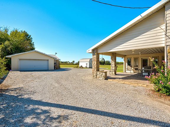 Country Living on 9.33 Acres M/L 3 bed 2 bath home features a remodeled kitchen with double ovens, walk-in pantry and a large island, a large master bedroom with a large walk in closet, one HVAC is new as of 2022, an oversized laundry room, sunroom and a great covered back porch. Outside there are two extra storage buildings, a detached 2 car garage with extra storage and a carport.