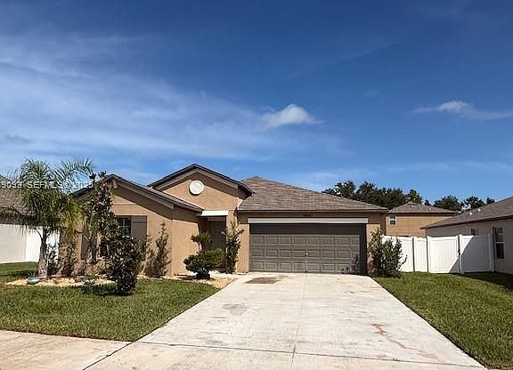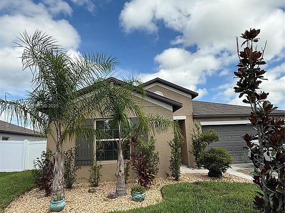 Enjoy this modern and beautiful home built in 2021, offering total privacy with no neighbors behind. Perfect for young families or retirees seeking comfort and tranquility. Spacious and functional, this 4-bedroom, 2-bathroom residence features a large garage and an open floor plan that seamlessly connects the living room to the kitchen, equipped with a center island and breakfast bar. The primary suite boasts a large walk-in closet with double hanging rods to maximize space. Laundry area includes washer and dryer. Relax outdoors with serene pond views and peaceful surroundings. No CDD fees and a low HOA fee covering basic cable and internet. Strategically located near major roads and shopping centers. Don't miss this remarkable property! Schedule a showing today.