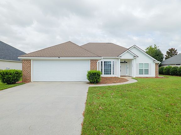 Welcome to the Highlands! Located in a private subdivision minutes away from Moody AFB, shopping, restaurants and more! Upon entrance, you are welcomed with high ceilings, hardwood floors and freshly painted walls. You will find a formal dining room with 8 ft windows that flows beautifully into the kitchen. The kitchen features an eat-in kitchen, full appliance package and a tiled backsplash. Your spacious laundry room includes washer and dryer to stay with the home. This split-floor plan home allows you to enjoy three bedrooms on the East wing, along with a full bathroom and a large primary suite on the West wing. The primary bedroom features dual sinks, large soaker tub, shower, and walk-in closet. Enjoy the great outdoors and escape the heat with a large screened-in porch and a fully fenced backyard. Call me or your favorite realtor for a showing today!