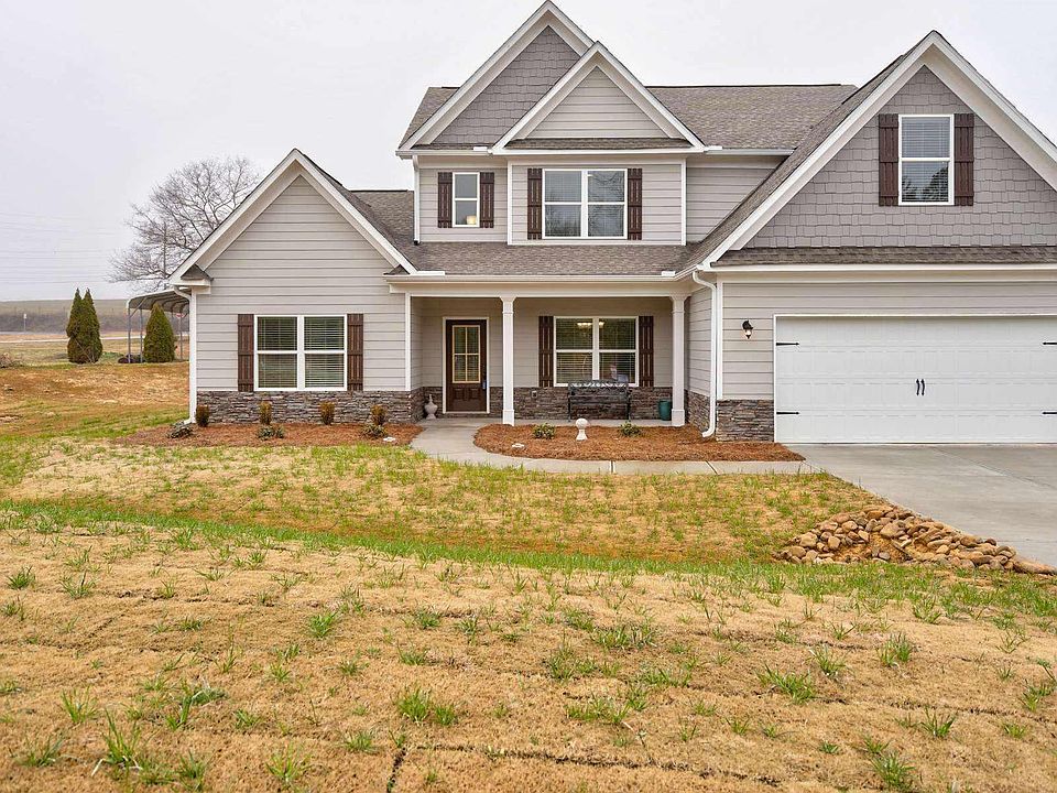 The Oconee plans provides all the right curb appeal with the gorgeous front porch perfect for sitting and relaxing. The large foyer opens to the formal dining room and leads into the open spacious family room. A powder room, perfect for guests is conveniently located downstairs. The spacious family room opens into a lovely breakfast area and open kitchen. A sitting room, located off the breakfast area is perfect for a study, playroom or mom's office. The huge pantry and laundry room are located just off the kitchen for convenience. Finish your tour of the first floor by entering the large and relaxing master suite. Showcased by optional trey ceilings, this luxurious space includes a large bath with his and her sinks, walk-in shower, and garden tub. The second floor of this home provides two additional bedrooms and bath with a finished bonus room. The second floor overlooks the family room for an open, airy feel.