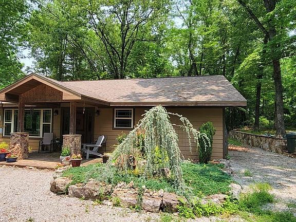 Very private homestead north of Baxter Regional in Mountain Home on 10.45 acres m/l. Long gravel driveway lined with beautiful trees ends at this unique home. 1,200 sq. ft. 2 bedroom, 2 bath open floor plan living room and kitchen, vaulted wood plank ceiling and large windows to enjoy nature views. Home built on a concrete slab stained & sealed flooring with heated coils in flooring not installed. ICF wall construction (poured concrete walls). Concrete composite sided, newer roof. Custom built cabinets and wood countertops. Heated/cooled by 3 split systems and gas propane back up heater in LR. Master bedroom is ensuite, stone shower, closet designed as safe room. Kitchen needs a propane gas stove/oven all other kitchen appliances are in place. Full Hall bathroom, second bedroom complete this one level living. Living room has french doors to the new deck & hot tub. There is also a large fire pit to enjoy, privacy is the key nicely cleared around home, beautiful wooded seclusion.