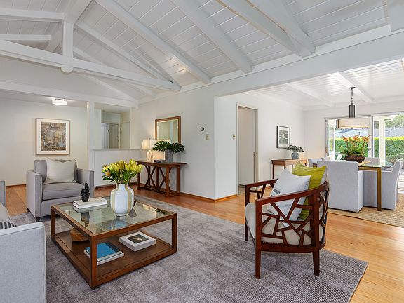 Iconic rancher on one of Upper Happy Valley's most beloved and sought-after streets. This wonderful single story home sits behind a white split rail fence on a half acre lot with a dream setting. The impressive brick front exterior transitions to an interior floor plan with perfect flow for casual everyday living, gracious formal entertaining and indoor-outdoor California living. The thoughtful design features a living room with open-beam ceilings, formal dining room and kitchen-family room combo with bar seating and breakfast nook. Detached oversized two-car garage with built-ins and large storage room that can also be used for a home gym or office. Backyard with multiple patio areas, pool and level lawns for play. Incredible location nearby to commute routes, Lafayette Reservoir, downtown Lafayette & top-rated Lafayette schools!