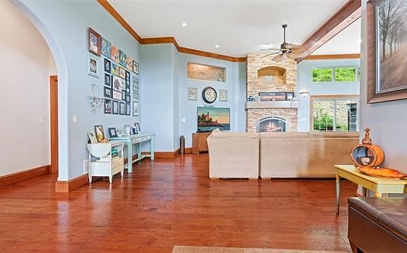 FOR SALE A LITTLE PEACE OF HEAVEN ! BEAUTIFUL SETTING , If you are looking for original this is the one. The floor to ceiling stone fireplace is a show stopper! Beamed high ceilings , beautiful lighting . Wide Open Floorplan , Room for more than one cook in the kitchen, Lots of custom cabinets and abundant counter space. Amazing wood ceiling. Prep sink located on island. Over sized pantry , double oven and solid surface counter tops. Dining area looks out on the patio where there seems to be a constant buzz of activity from the wildlife. Amazing windows arched and tall flooding the home with natural light. Beautiful wood floors that have been meticulously maintained. Big master suite with large closet, private patio and adjoining master bath with soaker tub , walkin shower and built in vanity. Amazing tile work. The second and third bedrooms are both great sizes , they are located on opposite end of house from the master. There is a storm shelter located in Bedroom closet. A 2 stall detached garage sits right next to the house and has it's own electric panel. A 60 by 100ft barn/outbuilding with water and power The building floor is partial concrete partial rock and has spray foam insulation. water and power. Nicely landscaped . Stamped sidewalk . Start your day with show stopping sunrises on your covered front porch and end them seeing all the stars the sky has to offer. Located right off main highway ,10 minutes to Richmond ,Only one distant neighbor