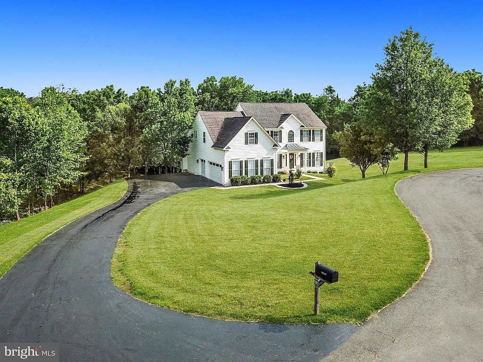 Take a deep breath and gaze at the stars! Welcome to this spacious and sunlit home located on a prime cul-de-sac lot, backing to trees and a natural stream, with a picture-perfect country bridge. Three finished levels and over 2 acres of privacy. Main level features formal living and dining rooms, office with built-ins, oversized and open gourmet kitchen leading to a morning room with a breakfast bar, tons of windows, and skylights. Adjacent 2-story family room with gas fireplace. Upper level features a master suite with a HUGE master closet and luxury bath. Three additional bedrooms and a full bath with double sinks. BIG walk-out basement featuring a den (bedroom), full bath, and recreation room with built-ins. LOTS of storage. Maintenance-free deck, side-load garage, and gorgeous lot.