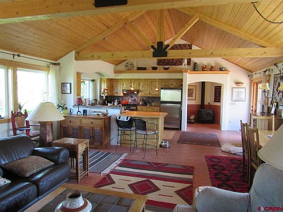 This could be the sweetest home between Durango and Cortez. Quality built single level home on 5 acres with breathtaking views in every direction! Only 11/2 miles south of town and 2 miles from Mesa Verde. You'll fall in love with the home as soon as you step inside the custom Alder door and view the brick flooring and rustic feel that leads you to the great room that is adorned with timber frame architecture, tongue and groove ceiling and the fireplace which is the focus of this comfortable area. The kitchen has blown glass pendants lighting the Boos Butcher Block counter and custom made knotty Alder cabinets. The custom finish continues with a slate tile backsplash and Grohe faucet and every want to be chef will appreciate the Sears Elite stainless appliances. Your attention will be drawn to the Alabaster sconces as you walk towards the bedrooms. Once you enter the master you will know that you have entered your own personal sanctuary where the windows focus on views of the La Plata mountains and exterior doors lead to a covered outdoor porch with its own fireplace. The master is completely ADA accessible including a walk-in, no step slate shower. An added bonus is the 21x14 guest quarters attached to the 2 car garage. The exterior is as exquisite as the interior with a beautifully xeriscaped courtyard off of the covered patio. The area around the house has a dog proof privacy fence. And there is fencing around the perimeter of the entire property which is planted in hay in case you have horses! This is a property you will not want to miss and will make your trip to the Mancos Valley worthwhile!
