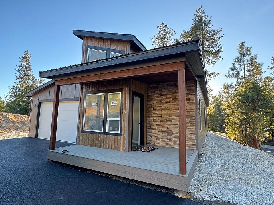 Completion October 2025! Secondary Lake Front New Construction Modern Rancher! No HOA! Enjoy one level lake life living with a 30x30 shop for all the toys and storage! Or finish out the shop to an ADU. Just moments away from the public beach! Two full size bedrooms with spacious closets and a primary suite with a walk in closet and step in shower! Open floor concept! Ample storage in the laundry room. Fully Finished Garage. Luxury vinyl flooring throughout, granite counter tops, knotty alder cabinets! Gated Entry to be installed. Imagine summer lake filled days followed by cool nights spent on the front or back covered deck! Come make your Lake Life Dream a realty!