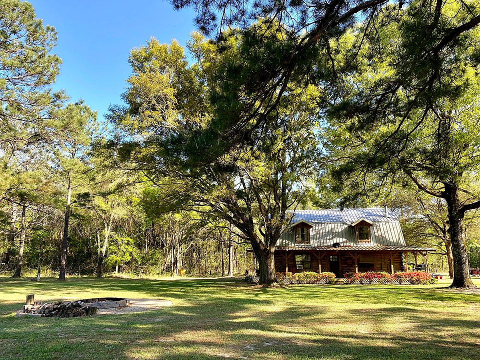 Rustic cabin nestled away in a grove of massive Oaks on 23 acres of pasture perfect for horses, cattle, or simply soaking in nature while fishing the private 1.5-acre pond. Cabin features a great room with a large stone fireplace and soaring 20' ceiling wrapped in 200-year-old pecky cypress with large plank wood floors. Continue to the eat in kitchen featuring stainless steel appliances, custom wood cabinetry, and an antique wood stove with stone surround. Main bedroom is downstairs overlooking side porch with his/her closets and bathroom featuring river rock shower, antique bathtub surrounded by panoramic windows, and petrified wood sink perched on a marble buffet. Continue upstairs boasting hand hued log railing to other 3 bedrooms and full bath. Truly a must see!!