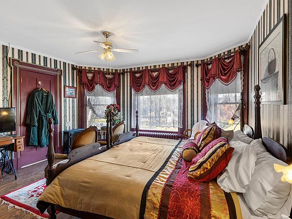 Built in 1895, this classic Victorian-style home in Poultney village is a timeless gem with a rich history spanning over 125 years. Boasting 6 bedrooms and 8.5 bathrooms, the property exudes the charm of Queen Anne confection architecture. The expansive residence is currently operating as a successful B&B, attracting visitors from far and wide who seek to immerse themselves in the unique and well-preserved ambiance of this historic home. With only three owners throughout its history, the property has retained its original character. The exterior is adorned with a wrap-around porch, providing a delightful spot for morning coffee. Inside, the home is bathed in natural light, showcasing gleaming natural woodwork throughout. The first floor features a welcoming foyer, an office/study, a living room with an electric fireplace, a dining area, and a kitchen equipped with two dishwashers and sinks for added convenience. Two bedrooms with full baths on the first floor add to the convenience, ideal for a first-floor master and guest bedroom. Ascend the grand staircase, surrounded by the glow of stained glass windows, to discover the remaining four bedrooms, each with its own attached bath. The full unfinished basement provides ample storage and extra space. With easy access to skiing, hiking, boating, golfing, shopping, and more, this property is a haven for those seeking a blend of history and modern amenities.