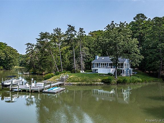 This beautiful river home situated on a point of land on Ewell Prong off of the Corrotoman River comes fully furnished. Absolutely beautiful interior finishes. Perched over the creek, this home boasts ample outdoor living including a new gunnite pool (2018), PVC deck w/ stainless steel cable railing, lower level patio, outdoor shower and a fantastic pier with boat lift and SeaDoo lift. Inside you will find open living spaces and abundant natural light. The living room and sun room flow freely out to the outdoor living areas. The living area enjoys a fireplace & opens to a waterside dining area. There is a large first floor owner's suite with water views and plenty of storage. The first floor also features a guest bedroom and hall bath. The kitchen features good storage and offers a breakfast area as well as bar area. Downstairs you will find a third guest bedroom with ensuite bath, a large living area and adjacent bunk room for those times you really pack the house. The living room walks out to an exterior patio area and outside shower. The rest of the lower level offers a laundry room, two large storage areas and a generous unfinished bonus room which walks out to the pool area.