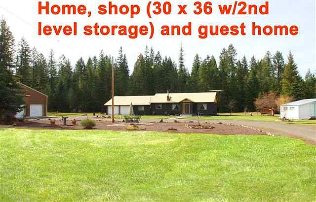 Single-level home with terrific 30' x 36' shop (2nd level storage) & a separate guest home too! Main home has 3 bedrooms, an open living room, large family room, 2 bathrooms, open living room & a guest home with 3 bedroom & 1 bathroom. Over-sized 2-car attached garage, stone patio & a mature forest. Great area with Priest Lake & Forest Service land close by. Easy access with county maintained roads & a good well. $199,000