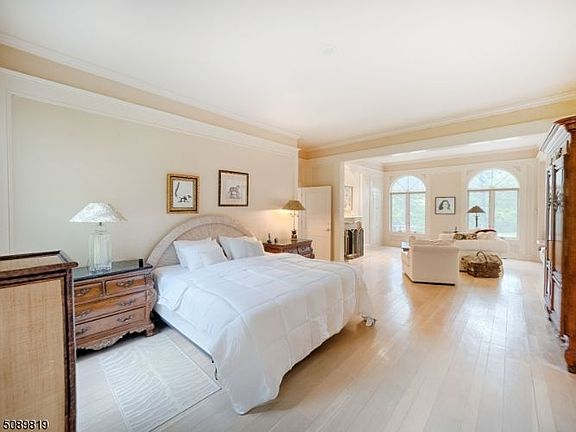 Elegant and spacious estate on 6 plus magnificent acres. Beautiful first floor primary suite wth entry hall, office, sitting room and ovesized primary ensuite bath. Entry hall in primary suite includes french doors leading to the patio and in ground pool. Feature rooms include a mahogany library with wood beam ceilings, formal dining room, leisure room with a wood burning fireplace and cherry cabinetry, wine cellar on the lower level, bonus living quarters with living room, kitchen and full bath. Also the eat- in kitchen boasts sun- filled breakfast nook, ample custum cabinetry, large island, double door pantry and access to the stone patio. Also three additional bedrooms and two full baths on the second level. This impressive estate is in the exclusive neighborhood of the historic Mendham center surrounded by rolling hills and private estates, award winning schools, distinguished clubs, shopping, restaurants and major highways.