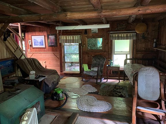 NEW LISTING! This 10 acre camp includes a beautiful back yard and a spring that feeds a small pond. There is a well, septic, storage shed, carport, covered front porch, a covered back deck and a sun porch. The 3/4 bath with shower is on the first floor and includes a utility/ laundry room. The inside of the home has a cabin feel with lots of wood and beam ceilings. The wood stove in the living room heats the home but there is an outside wood burner that would need some attention. There are 3 bedrooms and a 3/4 bath upstairs. The three rooms plus a 1/2 bath at the back of the house was a beauty shop with its own entrance. The beauty shop has a propane wall heater. The 2 story barn has wood floors and the second floor was at one time used as a little apartment but would make great storage now. This property needs attention and repair but turn it into a project and it can become that camp/home you've been waiting for!! CASH ONLY "AS IS"