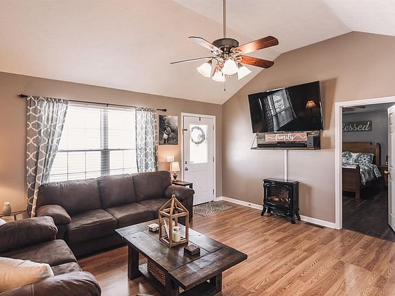 Pristine 3 bedroom 2 Bath home offers a split floor plan on one acre. It has new laminate wood floors, vaulted ceiling, large kitchen, new paint and a 24x30 Garage that is insulated with electric and automatic garage door. Beautiful country front porch and deck , separate laundry with washer and dryer included! Won't last long!