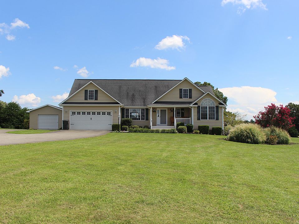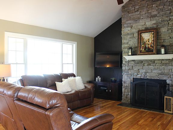 IMMACULATE! Beautifully cared for home on 1.27 acres with stunning views for miles!! Enjoy one level living with split bedroom plan. Open concept floor plan with vaulted living room ceiling, well appointed spacious kitchen that opens to the covered porch for incredible outdoor entertaining! The lower level is AmAzInG... rec room with wet bar, fireplace and room for a pool table opens to stone patio and fire pit! Full bath, fourth bedroom and tons of storage! The bonus to this home is the Theatre Room! Enjoy your fav movies & popcorn without having to leave home! The attached two car garage features drop down ladder to attic space, detached one car garage offers amazing shelving and storage, shed with garage door is perfect for your outdoor yard equipment! This home has it ALL!!