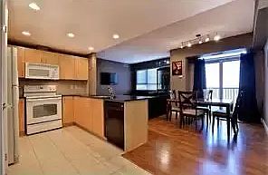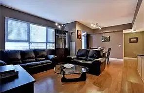 Generous open concept living room and dining room with quality wide-plank wood laminate floors, 9' smooth ceilings, oversize window and walkout to the large balcony. Open concept kitchen features modern cabinetry, granite counters, peninsula/island with a large breakfast bar, separate double door pantry, several pot lights and 4 appliances