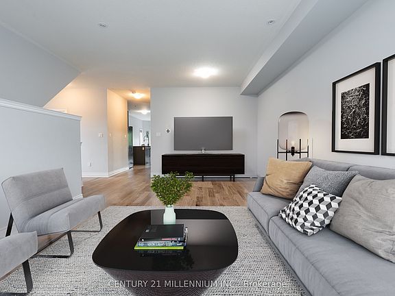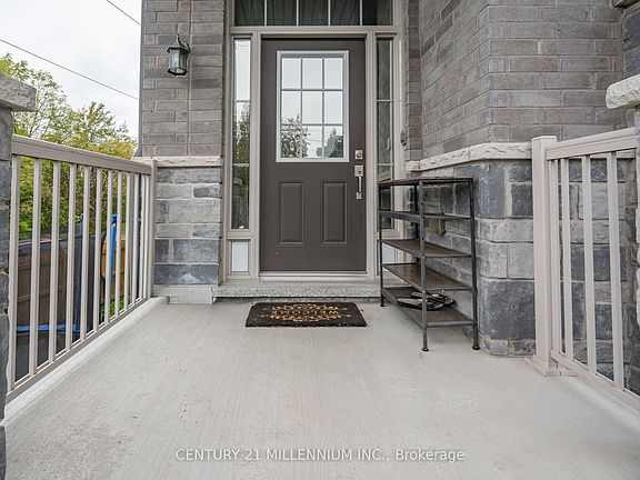 Welcome to this exquisitely finished 4-bedroom, 4-bathroom showhome on a premium corner lot in Brantford's desirable Riverwalk West community along the Grand River. This stunning 2450 sq. ft. three-storey detached home combines modern elegance with practical family living.The home's impressive curb appeal is enhanced by its brick, stone, and complementary siding exterior, paved driveway, 1.5-car garage, and a spacious elevated deck overlooking the landscaped yard.Step inside to discover a flowing open-concept layout featuring hardwood flooring throughout, a welcoming foyer,and a spacious main-floor living area perfect for entertaining. The custom gourmet kitchen boasts granite countertops, a large island, and stainless steel appliances, while the den/home office and 2-piece bath add functionality and style.The upper level features four generously sized bedrooms, including a luxurious primary suite with a walk-in closet and a modern ensuite bathroom. A second 4-piece bathroom completes this level.The fully finished walk-out basement offers even more living space, including a custom recreation room with patio access, a 3-piece bathroom, and direct access to the garageideal for family gatherings or guest accommodations.Experience the best of South Brantford living in this beautifully upgraded corner-lot home, nestled in a growing community near parks, schools, and scenic trails along the Grand River. Truly a must-see!
