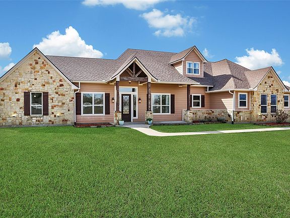 Located about 15 minutes from Huntsville, you'll find a beautiful custom ranch estate on 11.98 acres. Laced with gorgeous stone, cedar beams and shutters, large picture windows and a view of the pastures and barn. The office is complete with a sliding barn door built from wood from an old family estate. The kitchen invites you with it's leathered granite countertops, an island open to the living room, gas cook top, double ovens, and more. The butler pantry is lined with shelves, cabinets, drawers, and countertops. The living area offers a stoned floor to ceiling gas fireplace and beautiful mantle framed by built in shelving on both sides. The primary en-suite is the type of set up out of a magazine, soaker tub under a chandelier, huge walk-in shower, giant closets and more. Above the garage you'll enjoy 800 square feet of finished bonus space with a full bath. The barn contains 6 stall fronts and cross stall gates. This elegant Ranch home is your next stop for luxury real estate!