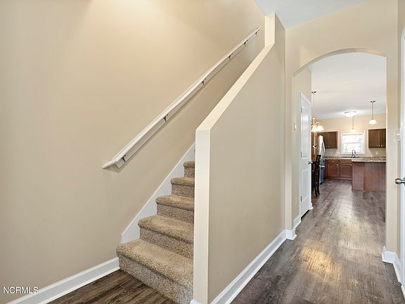 Discover coastal living at its finest with this turnkey townhome, conveniently located near Camp Lejeune, MCAS New River, and the pristine beaches of Topsail Island. Embrace the relaxed lifestyle this airy retreat offers, boasting a seamless open floor plan with 3 spacious bedrooms, 2.5 bathrooms, and a convenient upstairs laundry room. Step into a sophisticated kitchen, the heart of the home, featuring stainless appliances and a generous peninsula island perfect for casual dining. Entertain effortlessly in the family room, connected to the open dining area and extending to a private screened-in porch and custom raised brick patio—ideal for hosting barbecues or unwinding outdoors with loved ones. Retreat to your primary suite upstairs, complete with a sizable walk-in closet and a bathroom featuring dual vanities. This turnkey haven is available for immediate enjoyment, showcasing low-maintenance flooring, a fenced-in yard, and an attached single-car garage. Nestled in a desirable cul-de-sac backing up to a wooded area, privacy abounds in this charming abode. Don't miss out on the opportunity to make this dream home yours—schedule your showing today and seize the chance to experience coastal living at its finest!