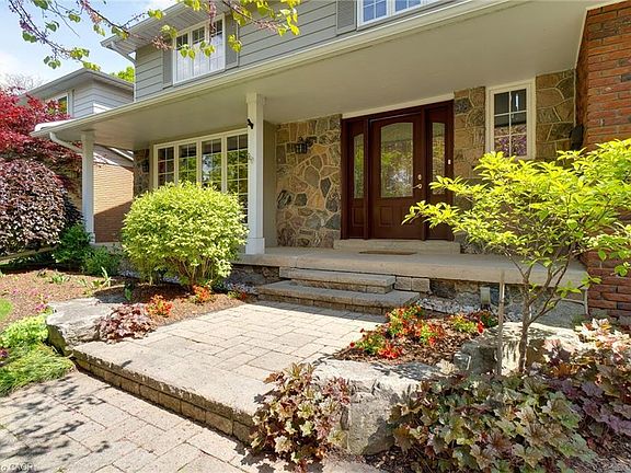 Picture Perfect Family Home in Desirable Shoreacres! Welcome to this beautifully maintained traditional 2-storey home, offering 4+1 bedrooms and 2.5 baths, nestled in the highly sought-after Shoreacres community in South Burlington. Curb appeal abounds with a covered front porch, double concrete driveway, and double garage with convenient inside entry. Professionally landscaped front and back yards, highlighted by a fully fenced backyard retreat. Enjoy the stunning wood deck, interlock stone patio, serene pond water feature, lush gardens, and a private pergola with a cozy seating area—perfect for relaxing or entertaining. Inside, the main floor boasts elegant formal living and dining rooms with gleaming hardwood floors and classic crown moulding. The spacious eat-in kitchen features warm oak cabinetry, granite countertops, and stainless steel appliances.. A comfortable family room offers built-in shelving and a charming wood-burning fireplace with a brick surround and bay window overlooking the rear yard and gardens. For added convenience, there's a main floor laundry room with direct access to the backyard. Upstairs, you’ll find four generous bedrooms, all with hardwood flooring. The primary bedroom offers his-and-hers closets and an updated 3-piece ensuite. A stylishly renovated 4-piece main bath serves the remaining bedrooms. The partially finished lower level provides even more living space, with a large recreation room, a fifth bedroom with updated broadloom, ample storage, and a spacious utility room. Located close to top-rated schools, parks, shopping, and all major amenities, this home also offers easy access to highways and GO Transit—ideal for commuters and growing families alike. Don’t miss your chance to own this exceptional home in one of Burlington’s most desirable neighborhoods!