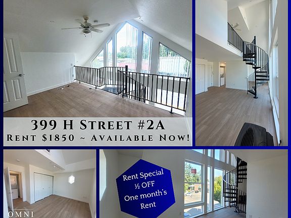 Gas fireplaceLarge windowsIn-unit washer and dryerVaulted ceilingsGas rangeSpiral staircaseNew paint