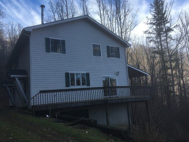 TOP OF THE MOUNTAIN OFFERS PRIVACY Plus Mountain View. Built in 2002 this home has an living room with corner stone fireplace, combination dining/kitchen, one bedroom, bath and office/study on main level. Covered porch to sit and relax and enjoy the mountain view and sounds of nature plus side deck on side of home. Upstairs is two bedrooms, two baths and large utility room. Full drive-in basement with half bath(Interior and exterior entrance). Buyer is advised to confirm all information, do all inspection and current survey. All information is per tax records. IF YOU WANT A MOUNTAIN RETREAT THIS IS DEFINITELY ONE YOU WILL WANT TO SEE!