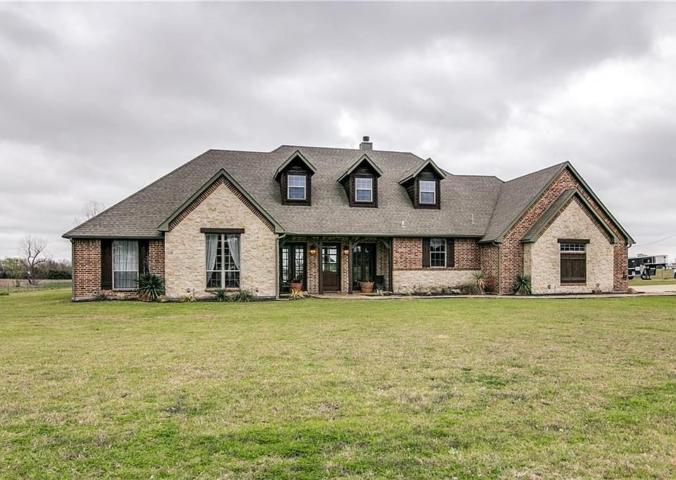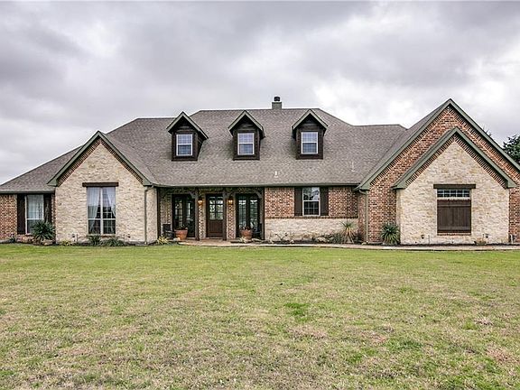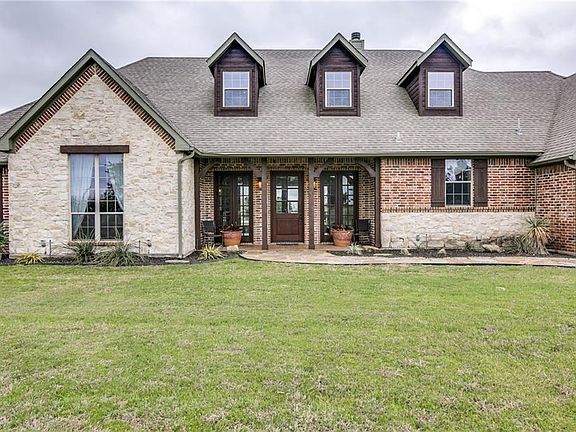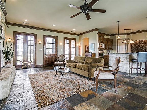 Custom home on 12 acres with 2 bedroom 1314 square foot guest house, horse stalls, and stock tank. Floor-to-ceiling windows look out onto beautiful acreage and pond. 3 bedrooms, 2.5 bath, with private office featuring coffered ceiling and window paned pocket doors. 10 foot ceilings, 8 foot doors throughout, crown moldings, marble counter tops, glass tile backsplash, custom lighting fixtures, copper sink in powder bath. 3rd garage with zoned HVAC. Lovely covered back porch with plenty of room for grill, table, and seating areas. Entire 7 acres fenced, with 5 acres of wire mesh fencing.