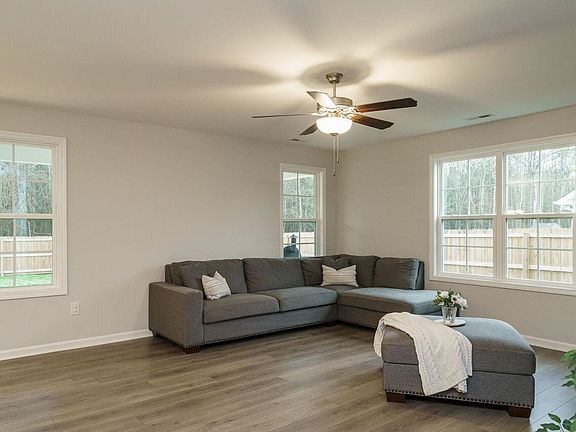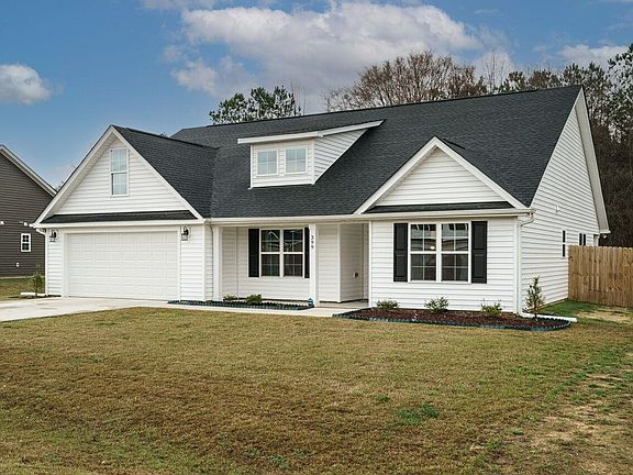 Gorgeous one-level spacious home that is move-in ready. Very new home features open layout with split bedroom floor plan. Open kitchen with amazing counter, cabinet space and pantry. Large island perfect for entertaining. Bright dining area -- all open to huge family room. Easy maintenance LVP in main living areas. You can enjoy upcoming summer nights outdoors with this beautiful covered porch, fully fenced backyard and over 3000 sq ft of fresh sod. Low maintenance living with vinyl siding, flat yard, low HOA dues. Welcome Home!