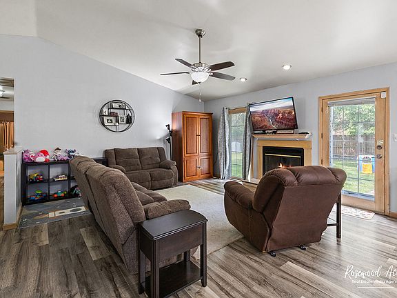 Welcome to this 3 bed and 2 bath ranch home located in the heart of Bourbonnais! This home offers an open airy feel when you walk into the living room, which features cathedral ceilings, lots of windows, for natural lighting, and a cozy fireplace. This open layout connects into the spacious dining room and into the kitchen, that has a large breakfast bar, providing extra seating, and beautiful white cabinetry. Down the hall is the primary bedroom that has a huge walk-in closet and an attached full ensuite bathroom! There are two remaining bedrooms, both are great in size, and a neat and tidy full guest bathroom. The backyard is completely fenced-in and has a nice patio, perfect for a grill or firepit. Attached two car garage and located close to local parks and restaurants. Don't miss this one, call today for your private showing!