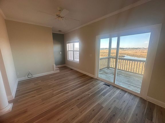 Beautiful waterfront home with sweeping views of the sound, intra-coastal waterway and marshlands. Open floor plan with 9-foot ceilings and granite countertops in the kitchen. New flooring being installed throughout entire home, as well as a new full paint and upgrades. Custom waterfront decks on two levels have Trex Enhance composite decking and PVC handrails. Master suite has a private waterfront deck to enjoy a morning cup of coffee watching the boats pass by or relax with a glass of wine watching the sunset. Deck off living room is great for dining and entertainment, watching herons and pelicans' fish or watching the sun set. Balcony off bedroom #2 has ocean views. Enjoy the morning sunshine or the moon rise while sitting on the balcony off of the kitchen. Only 2 blocks to the ocean. 3rd party sites may have incorrect information, please call or check out our website for accurate information.