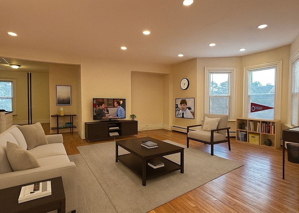 Come see this ultra spacious 5 bedroom, 3 bath duplex apartment on the 2nd and 3rd floors of a well maintained, gorgeous two family home property that feels like your own home! Featuring a huge living room/entertaining space, a nice primary bedroom on main level, laundry in the unit, private front & back decks, and a large shared back yard. Large & lovely apartment is near the heart of the increasingly hip & vibrant Village of Newtonville with great dining options, Whole Foods, Trader Joe's, and commuter rail transportation into Boston. Walk to Cabot/Day/North schools. You will be hard pressed to find a nicer setting. Several photos are virtually staged. Apartment is currently vacant & easy to show. No smokers please.