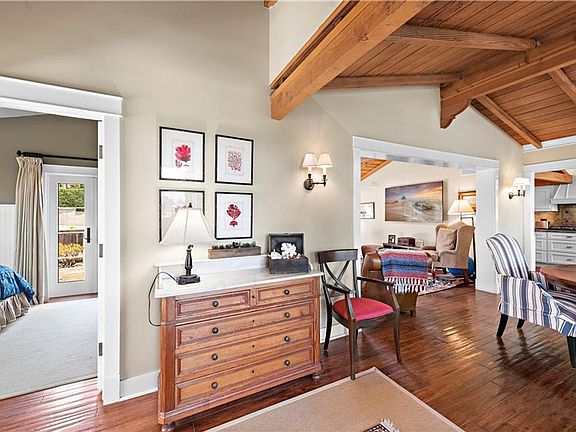 Fantastic ocean view Woods Cove home found just minutes away from glistening sand and the lapping waves of the Pacific, just 3 blocks to be exact. This wood and glass custom home sits on a corner lot surrounded by mature landscaping and perched above Pearl Street beach and within walking distance to many shops and restaurants, including the Pearl Street General Store! Features include charming Dutch doors, open beam vaulted ceilings, hardwood floors, expansive ocean view entertaining deck, cozy fireplaces in both living and family rooms, fully equipped gourmet kitchen, inside laundry room, three large bedrooms all with beautifully updated ensuite bathrooms, upstairs master suite has another deck with incredible ocean view! Ample outdoor living space with completely fenced in wrap-around yard and area to BBQ, plus two car parking on the brick driveway and street parking with permit. All utilities including wifi are included!