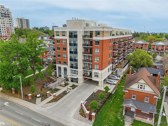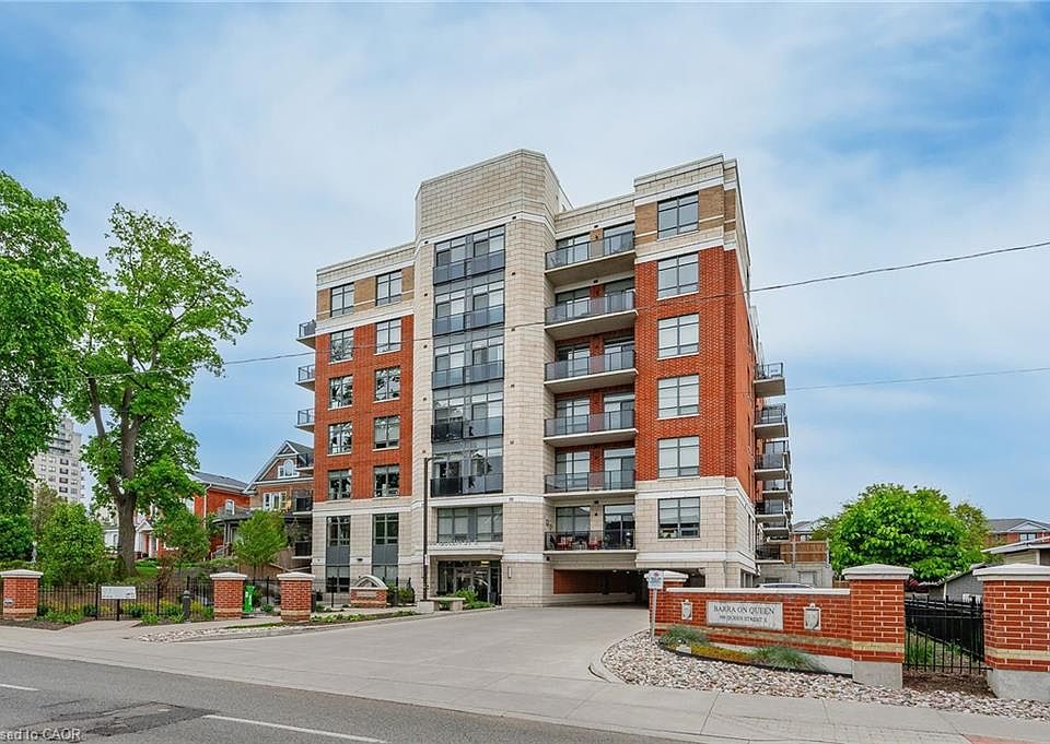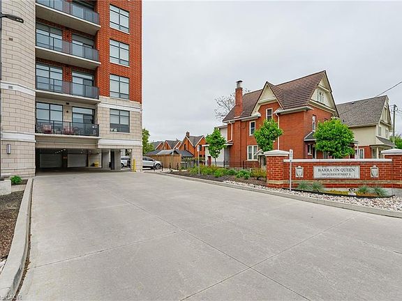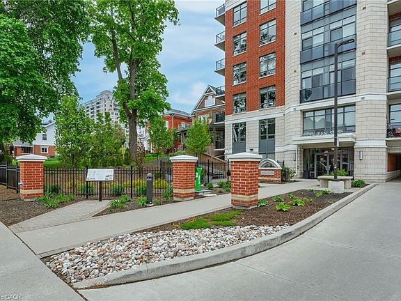 Experience Downtown Living at Its Best, Welcome to Barra on Queen! Situated on the historic site of the former Barra Castle, this stylish six storey condominium perfectly blends timeless character with modern design. This beautifully appointed 1-bedroom, 1-bathroom suite offers exceptional value in the heart of Downtown Kitchener. Just steps to Victoria Park, the LRT, and a wide array of shops, cafes, and dining options, this location offers the ultimate in urban convenience. Inside, you’ll find a thoughtfully designed open-concept layout featuring quartz countertops, a sleek backsplash, and a breakfast bar, perfect for casual meals or entertaining guests. The suite is bright, modern, and inviting, making it ideal for first-time buyers, investors, or downsizers seeking a low-maintenance lifestyle in a vibrant setting. Residents enjoy premium amenities, including a fully equipped gym, a residents’ lounge, and a shared outdoor patio with BBQ area, perfect for summer evenings. While the unit does not include a parking spot, there is ample public parking surrounding the building, all within close walking distance. Monthly parking passes are available, making it a convenient and flexible option for vehicle owners, especially when considering the excellent value this unit offers. With reasonable condo fees, well-managed upkeep, and a building that pays homage to Kitchener’s rich architectural history, Barra on Queen is a standout opportunity in one of the city’s most desirable communities. Don’t miss your chance to own in this sought-after building, schedule your private viewing today!