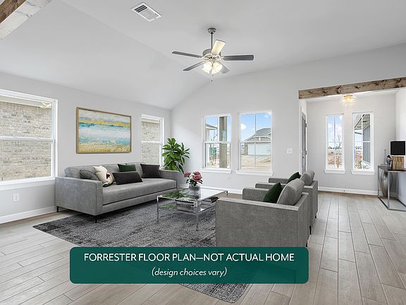 This home is full of ample storage and abundant natural light. The kitchen has a floating island with quartz countertops, a gas range, and great views of the backyard with a covered back patio. The master suite is designed with a large walk-in closet and dual vanities. Oasis Ranch is a quiet community featuring a playground and nature habitat with a pond. Blanchard was recently named one of the safest cities in Oklahoma. Included features: * Two-year home warranty * 10-year structural warranty * Guaranteed heating and cooling costs * Fully landscaped front & backyard * Fully fenced backyard. Floorplan may differ slightly from completed home.