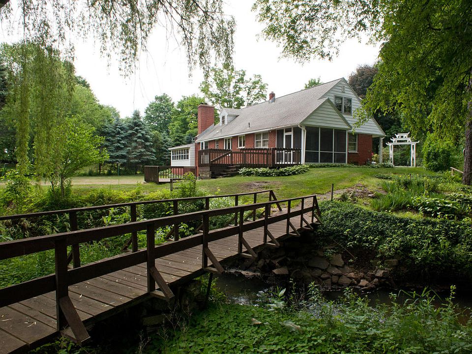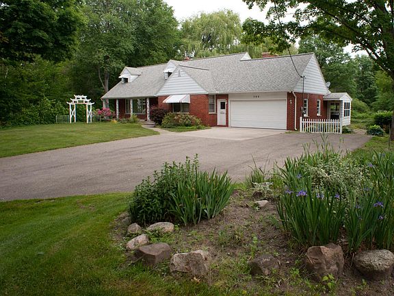 Classic 1 1/2 story brick ranch on 8 acres on Holland's north side with flowing creek in the back yard. Large living room, dining room, and family room with fireplace. Main floor master bedroom and two huge upstairs bedrooms with full bath. Beautiful view from screened porch with deck overlooking the creek and walking bridge. 3-season room attached to 2-stall finished garage. Hardwood floors and slate entryway. Lots of storage with shelving. Spacious lower level rec room with second fireplace. N ewer high-efficiency furnace and roof. Beautiful landscaping and flower garden with storage shed. Possible land split with buildable site on north side of creek.