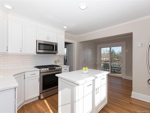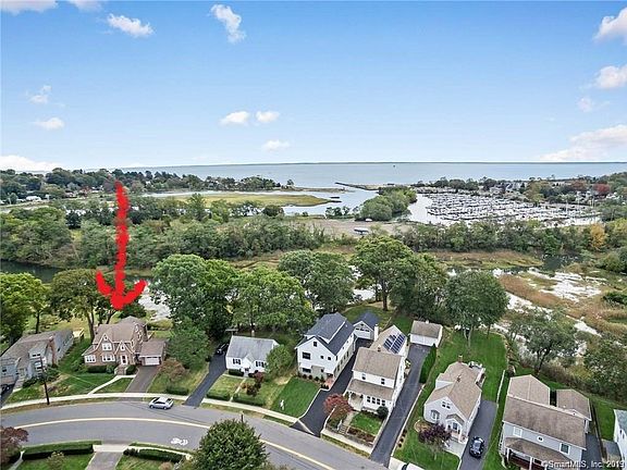 THIS HOME IS NOT IN A FLOOD PLAIN, so no flood insurance is needed. Walk to Jennings Marina & Beach from this location with views of LI Sound. The charm & character of this 1929 English colonial is evident around every corner: high ceilings, curved archways, deep moldings, storybook alcoves, FP and built-ins. A brand new EIK features white cabinetry, quartz countertop, center island, subway tiled backsplash, SS appliances, plenty of cabinetry & storage, Powder Room, dining area & sliders to a deck overlooking Ash Creek. A center hall leads to sun drenched LR with FP & adjacent office/den. DR with sliders also leads to rear deck, making entertaining in warmer months a cinch with this open floor plan to the deck. Second level offers 3 BRs & full bath. The MasterBR is quite spacious & has potential for MBA. Windows overlooking the tidal waters of Ash Creek & LI Sound in the distance will ensure a peaceful night's sleep. A large walk in closet can be repurposed to create new MBA & still keep a i closet. Ask agent for details. A walk up attic is full ceiling height. Great storage and expansion potential to afford LI Sound views. A breezeway with mudroom closet connects the garage to the kitchen & basement. There is expansion potential with this home but buyer must do own due diligence. New or newer windows, new kitchen, mid cycle on a 40yr roof, newer CAC, gas furnace with tankless hot water heater. This home has been lovingly maintained & updated. A rare find in the beach area.