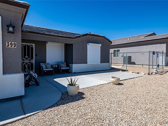 This newer 2021 home is truly a desert gem, featuring 3 bedrooms, 2 bathrooms, 2-car garage and OWNED SOLAR. The interior is bright and welcoming, thanks to an open floor plan and split bedrooms. The primary suite includes a spacious walk-in closet and a walk-in shower in the primary bathroom. The kitchen offers ample storage, including a walk-in pantry, and there's a convenient indoor laundry room. Many upgrades have been added such as extended front and back patios perfect for relaxing. The large, well-built shed/dog house is designed as a miniature version of the home. Additional features include a tile roof, front yard landscaping with an automatic watering system, and a fully fenced, large backyard with RV gates for parking your recreational vehicles and toys. Custom built security window and door covers are installed for added protection and perfect for part-time living. All electric home with recent zero electric bills due to SOLAR. Don't miss the opportunity to view this well-maintained home! CALL YOUR AGENT TODAY