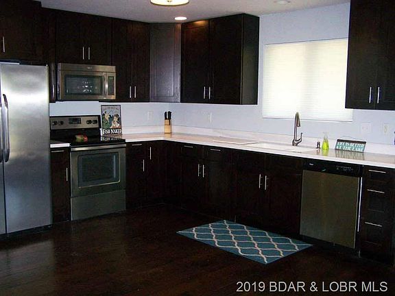 Great feel to this remodeled/upgraded 3 bedroom, 3 bath lakefront home. Third bathroom in walk-out basement is partially finished. Upgraded quality home has granite countertops, stainless appliances, hardwood floors, all new windows and much more! Walkout lower level is ready for completion. Private cove location on gentle lot at the 6 MM of the Little Niangua. Move-in condition. *** 24' 2001 Sundancer Tritoon can be purchased for xtra $'s. (150HP motor, cover & trailer included)***
