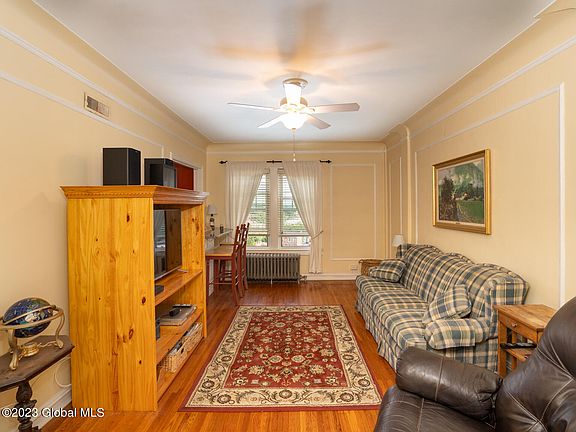 Beautiful historic condo in the heart of Albany - just across from Washington Park! Enjoy the convenience of walking to dining, shopping and strolling through the Park. 1 bedroom, study, living room and kitchen. Hardwood floors, central air and washer/dryer (rare for this building). Heating bills and maintenance are a thing of the past as it is part of your HOA fee. Wonderful secured shared lobby area to meet your neighbors and guests. Storage units for the extra items - elevators.