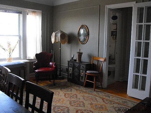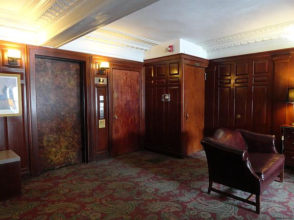 Easy living on Albany's beautiful Washington Park! Sunny 9th floor (top floor!) studio with views of western Albany! Living room has original architectural details and hardwood floors. Updated kitchen includes a cozy eating area. Alcove space is currently being used for sleeping but would also make a great office or walk-in closet. Vintage built-in cabinetry for extra storage. Ceramic tiled bath. Monthly HOA fee includes heat, hot water, water/sewer, etc. Thermostatically controlled radiators and newer energy efficient windows throughout. Owner will include some furnishings, if desired. Building has pet restrictions.