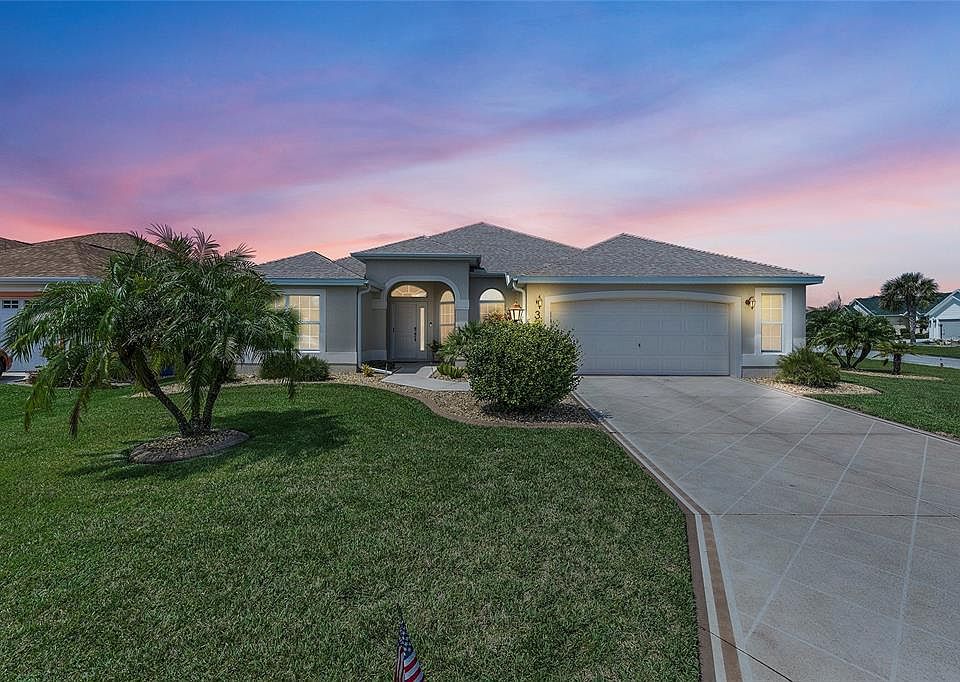 One or more photo(s) has been virtually staged. Located in the village of BELVEDERE in THE VILLAGES, FLORIDA! You'll enjoy the convenience to Shopping, Banking, Doctors, multiple Golf courses, The Fresh Market, Sprouts Farmers Market, Lake Sumter Landing; by golf cart! Nestled in the heart of the vibrant retirement community, this elegant stucco home built in 2005 offers a delightful blend of style, comfort, and modern conveniences. Designed with a discerning eye for detail, this extended Gardenia Designer floor plan home is a testament to thoughtful living. Property Highlights include: Roof Replaced in 2021, HVAC Updated in 2020, Water Heater Replaced in 2021, Sunstar Motorized Awning, 19' x 10' oasis added in 2021 inside the birdcage, providing a perfect outdoor retreat. 100 Amp Service Added in the birdcage, ideal for spa hookup. No Columns in the dining area seamlessly flows into the living room, creating an open and inviting space. A charming breakfast bar, newer stainless steel appliances, and an attractive backsplash make this kitchen a chef's delight. Elegant tile on the diagonal, laminate, and plush carpeting throughout. The spacious master bedroom features a master ensuite with dual sinks and a dressing table, as well as a walk-in shower for added convenience. Garage can accommodate 2 cars and a golf cart due to a 2-foot extension in depth and 4-foot extension in width during construction. Motorized Screen Door over the garage for added security and convenience. Interior block walls are insulated, and the attic boasts solar shielding for comfort and cost savings. The driveway and walkway are artistically painted, creating a welcoming curb appeal. Enjoy all the activities and amenities offered in The Villages, making retirement living a truly delightful experience. The bond is paid in full. This home has been lovingly maintained by its original owners, making it a unique opportunity for those seeking an upscale, move-in-ready residence. Don't miss your chance to make this exceptional property your new home in the Sunshine State! For more information or to schedule a private showing, please contact us today. Your dream retirement home awaits! (Call today to ASK US how to enjoy SAVINGS of up to $5,000 in closing costs or choose a 0.25% rate discount with our preferred lender when financing!)