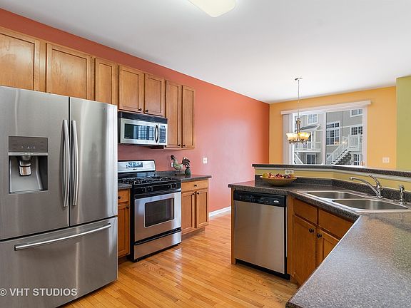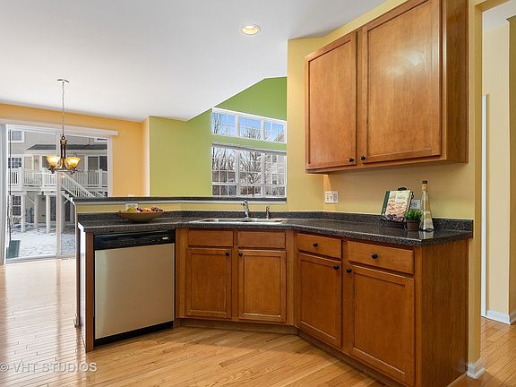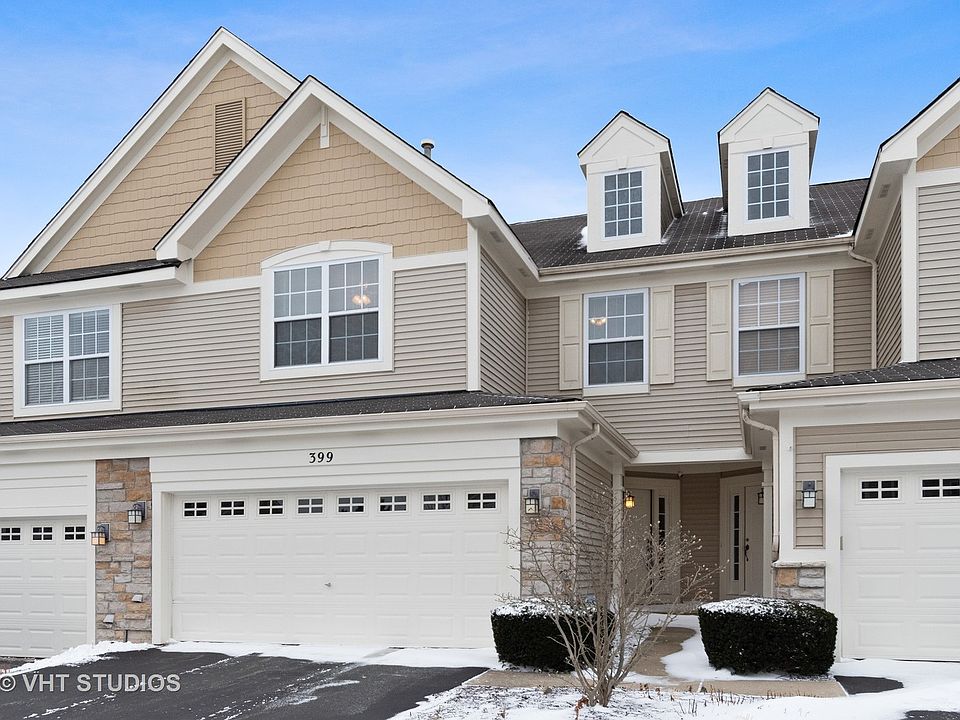 PRISTINE NORTH FACING UNIT! This highly sought-after Auburn model boasts 3 bedrooms, 3.1 baths and a full, finished basement. Move-in ready with hardwood floors on the main level and newer carpet on the upper level. The kitchen offers stainless appliances, upgraded cabinetry and complete open concept living, flowing into the dining and living areas. Tons of natural light fill the space. The living room features vaulted ceilings, a picture window and a gas fireplace. A powder room and laundry room complete the main floor. On the upper level you will find the master suite, featuring a vaulted ceiling, dual-sink vanity, soaker tub, separate shower and large walk-in closet. Two additional bedrooms and a hall bath complete the upper level. A recreation room and full bathroom can be found in the full, finished basement. The backyard space includes a patio and professional landscaping. This unit features a two-car attached garage and private, covered entry. Close to EVERYTHING! Route 59 Metra Station, expressways, shopping and more. Award-winning Naperville 204 schools. This is truly the one!