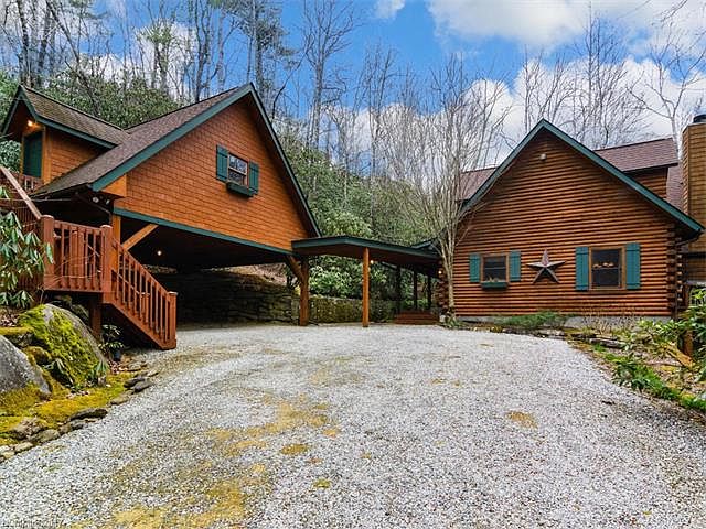 If you have dreamed of a log home on a private lot (2.18 ac) with a stream flowing by the house surrounded by tall stately trees, this is the home of your dreams. The current owners have added many upgrades: remodeled kitchen with granite and stainless appliances, finished off the basement with a workshop, game room and storage. They added a two car carport with a room for storage or work/shop. Extensive landscaping has been done. Mostly furnished with very nice furniture and fixtures. LM-3