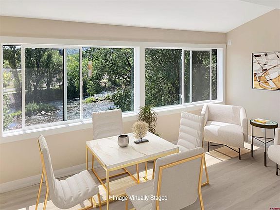 50k IN PRICE REDUCTIONS! River front, elevator accessed, single level and located in one of the most desirable and upcoming professional complexes in the heart of the downtown Durango corridor, this remodeled 3 bedroom/2 bath condo offers the very best of no-maintenance, in town living perched over the west bank of the Animas River. There are no other complexes like it in downtown with this kind of river and downtown access. This 1725 unit was almost completely gutted in 2022, with the floor plan rearranged and beautifully updated throughout. The hard work is done! The contemporary kitchen opens generously to the dining/bar area, both overlooking the large living room and gas fireplace. Offering outstanding entertainment flow and bathed in natural light, this very open common area allows for a variety of furniture options and takes full advantage of the views and sounds of the Animas River via a wall of east facing windows. Plans to construct a river side sunroom or potentially a deck are in the works and Seller will share plans. The Primary Suite boasts a spacious walk in closet, large en suite bathroom and another wall of windows that bring in the sounds and views of the Animas River. The 2nd bedroom is situated on the other side of the unit for ample privacy and has a large side by side closet. The 3rd bedroom was thoughtfully created for an office space. This room has a large closet which houses the washer/dryer and other mechanicals, and has room to add additional shelving and hanging. These two rooms share a full bathroom, cleverly redesigned to have a lock off 1/2 bath for day to day guests to use. A large patio out front can accommodate a sitting area and propane grill, and enjoys pleasant westerly views and great sunsets. There is a brand new lounging deck for owner common use built by the river, make sure you dont miss seeing that! Home Owners Association is very well run, and there are just 16 units in this complex. Many units here are being renovated and it is an exciting time at this upcoming location. There is one assigned parking space by Elevator and plenty of overflow. There is also a garage dedicated to residents for secured parking of bikes, skis, etc. This complex enjoys unique out-the-door proximity to the river trail and pedestrian foot bridge, maximizing the pleasures of simple, downtown living.... without having to contend with the usual downtown hustle and bustle when you don't want it. The most discerning of buyers will appreciate the best of Downtown Durango to be enjoyed from this unique turnkey and updated unit on the river. Riverfront and remodeled in Durango, Colorado at this price can only have a huge upside on the long term investment